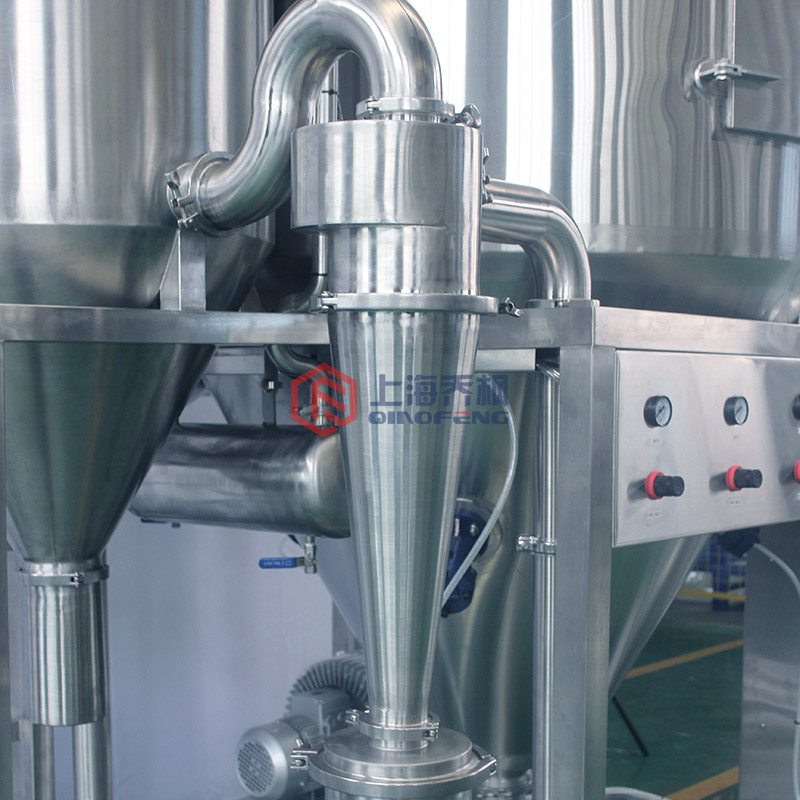 本款噴霧干燥機由八個系統組成,即供料系統、霧化系統、干燥塔、物料回收系統、 尾氣處理系統、加熱系統、管道系統和控制系統。